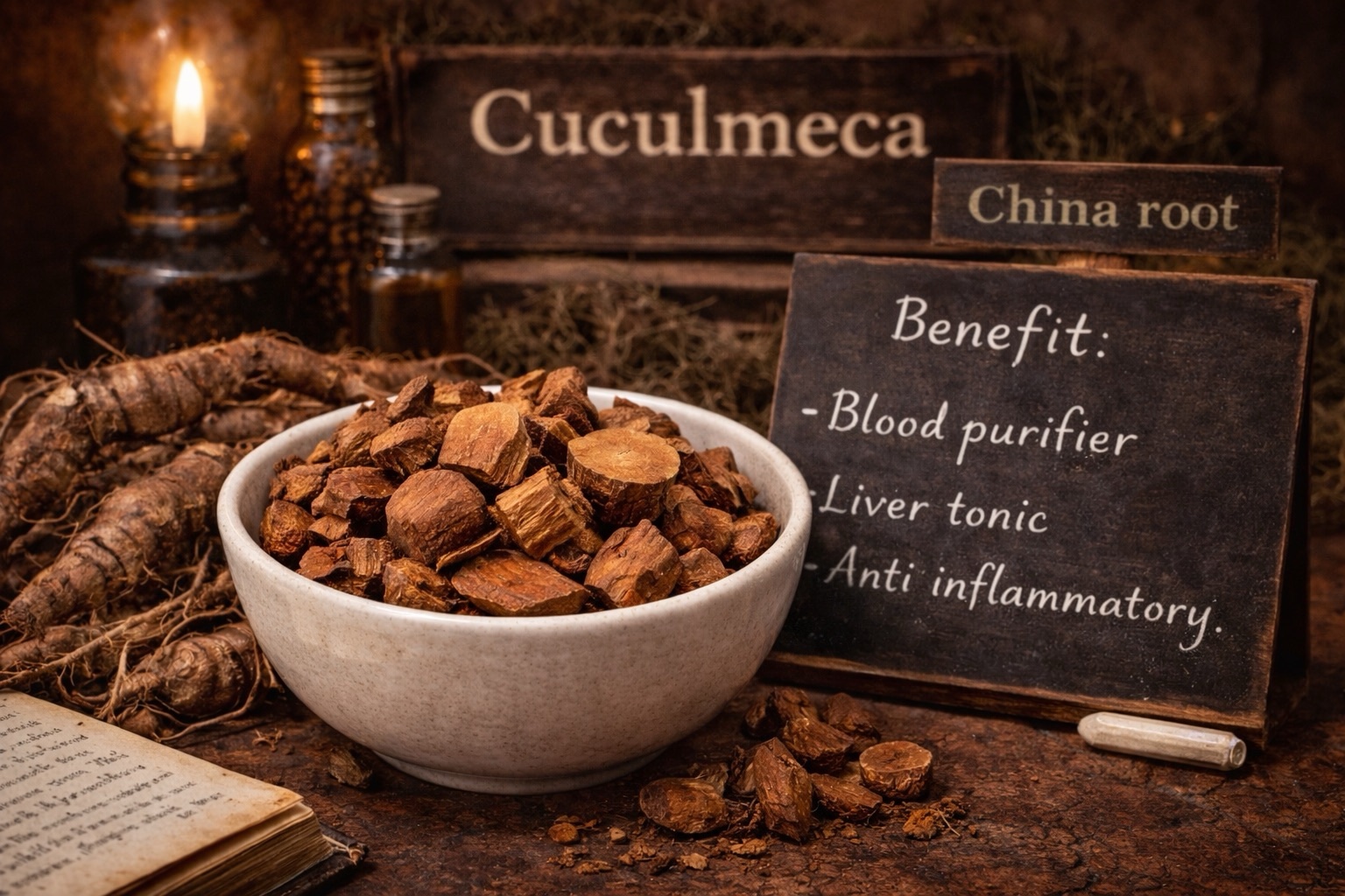 Cocolmeca is a wooded vine with a thick red underground tuber belonging to the smilax genus.  This herb’s root is a thicker tuber and has been used for medicine for 1000’s of years, but gained considerable attention in the 16th century when it was discovered by Europeans in India and used to treat syphilis. It was found amongst the peasantry in China and became one of the most traded plant medicines of that day.  China root, as it was called, is a great source of iron and is used to build and strengthen the blood and immune system.